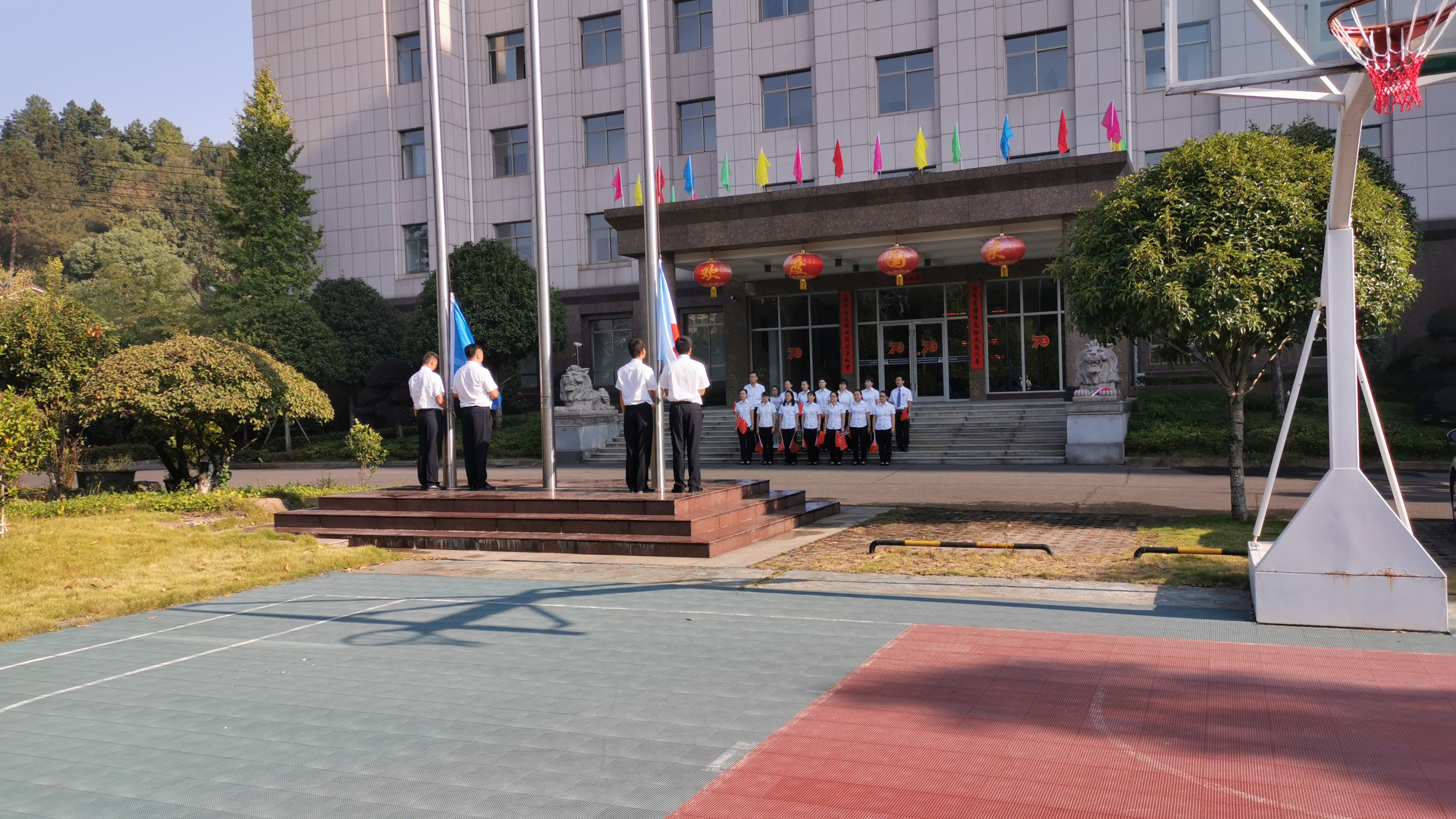 2019年10月1日,是中华人民共和国成立70周年。为祝福祖国70周年华诞,感受中国人民70年奋斗历程,增强员工国家、民族的自豪感和向心力,积极营造健康向上的企业文化氛围,我们跃达人用自己的方式庆祝祖国母亲70周年华诞。9月30日,举行了升国旗仪式,公司管理人员参加了此次活动。 ![]() 8:30分,伴随激动人心的国歌声鲜艳夺目的五星红旗冉冉升起。全体人员肃穆而立,向国旗行注目礼,五星红旗迎风飘扬、雄壮国歌振奋人心。 ![]() 仪式结束后,全体人员面向国旗以合唱“歌唱祖国”,为新中国成立70周年献礼。五星红旗迎风飘扬,歌唱我们亲爱的祖国!祝福我们伟大的祖国繁荣昌盛、幸福安康!让我们跃达人不忘初心、牢记使命、砥砺前行! ![]() |